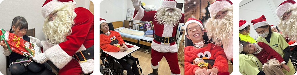 ご家族の方も参加可能なクリスマス会には趣向を凝らしたプログラムだけでなく、なんとサンタさんも降臨!